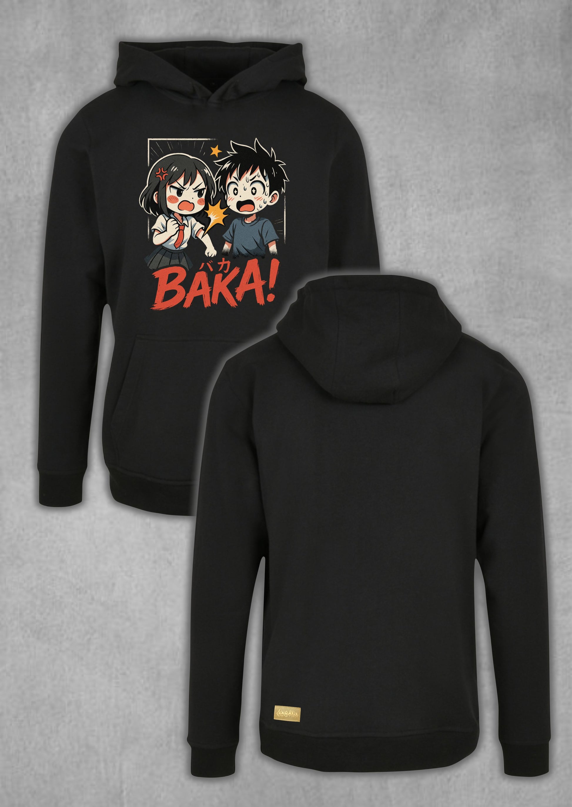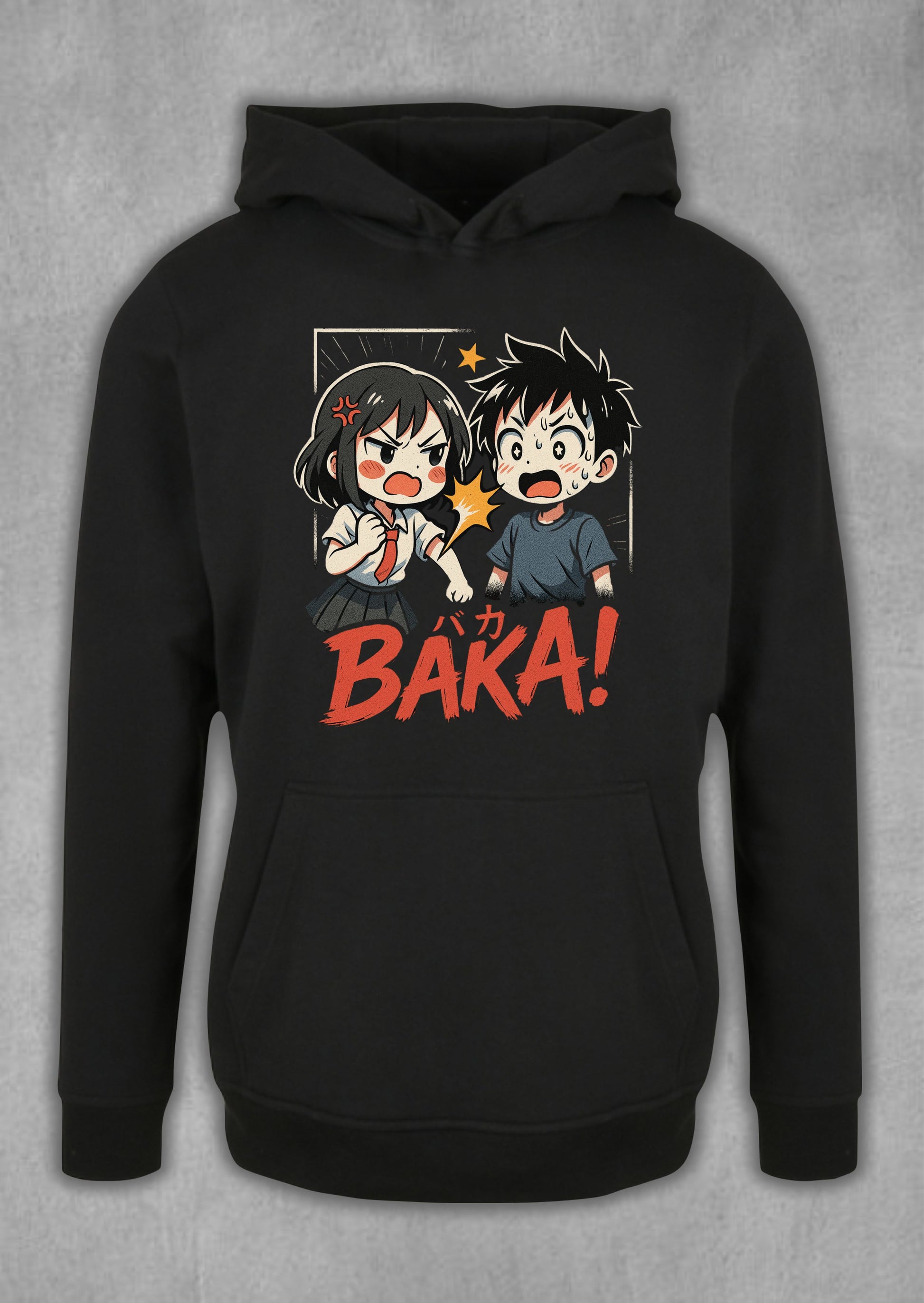 Sag’s auf Japanisch – und mit Stil! Unser BAKA Hoodie ist das perfekte Statement für Anime-Fans, Otakus und alle, die ein bisschen freche Selbstironie feiern. "Baka" (バカ) bedeutet auf Japanisch „Dummkopf“ – aber auf diesem Hoodie wird’s zum Kult!